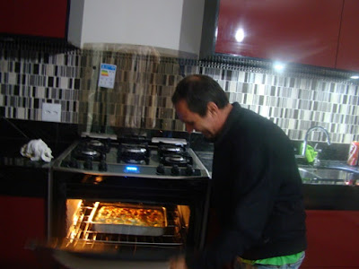 Preparei com muito carinho uma lasanha pra essa cambada, kkkk! Foi lá na casa do Fernando!