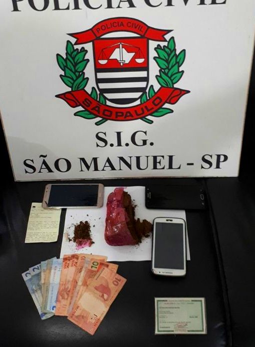 A Polícia Civil de São Manuel, através da equipe do Setor de Investigações Gerais (SIG), formada pelos investigadores Bola, André, Guiari e a cadela Akira, realizaram um flagrante de tráfico de entorpecentes na Avenida Irmãs Cintra, região central da cidade.